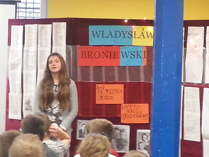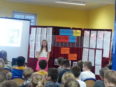 Dzieci miały okazję zapoznać się z biografią poety, przedstawioną w formie prezentacji multimedialnej. Ponadto wysłuchały pięknych wierszy w wykonaniu kolegów i koleżanek. W prezentacji zawarte były piosenki oparte na wierszach W. Broniewskiego a śpiewane przez współczesnych artystów (rapera Eldo i zespół Kalambury). Wrażenie na uczniach wywarła recytacja wiersza w wykonaniu samego poety ( nagranie archiwalne). Urozmaiceniem akademii były piosenki śpiewane przez uczniów, przy akompaniamencie gitary (Kamil Kryń kl. III a). Podsumowaniem spotkania był konkurs wiedzy o poecie.