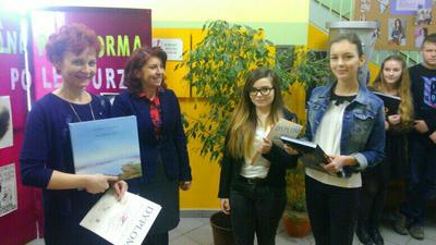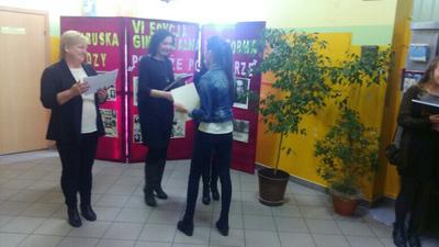 Na zakończenie Dyrektor szkoły Pani Ewa Thiemann pogratulowała wszystkim uczestnikom, zwłaszcza laureatom i finalistom. Następnie wręczono nagrody książkowe, które ufundował Wójt Gminy Górzyca Pan Robert Stolarski. Każdy uczestnik otrzymał dyplom i książkę , nauczyciele zaś odebrali z rąk Dyrektora podziękowania za przygotowanie uczniów do LGPW „Podróże po lekturze”, za pracę w Komisji Oceniającej oraz piękne albumy przeznaczone dla poszczególnych szkół.