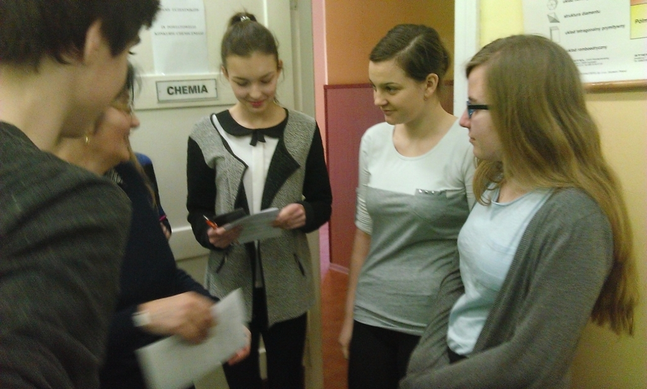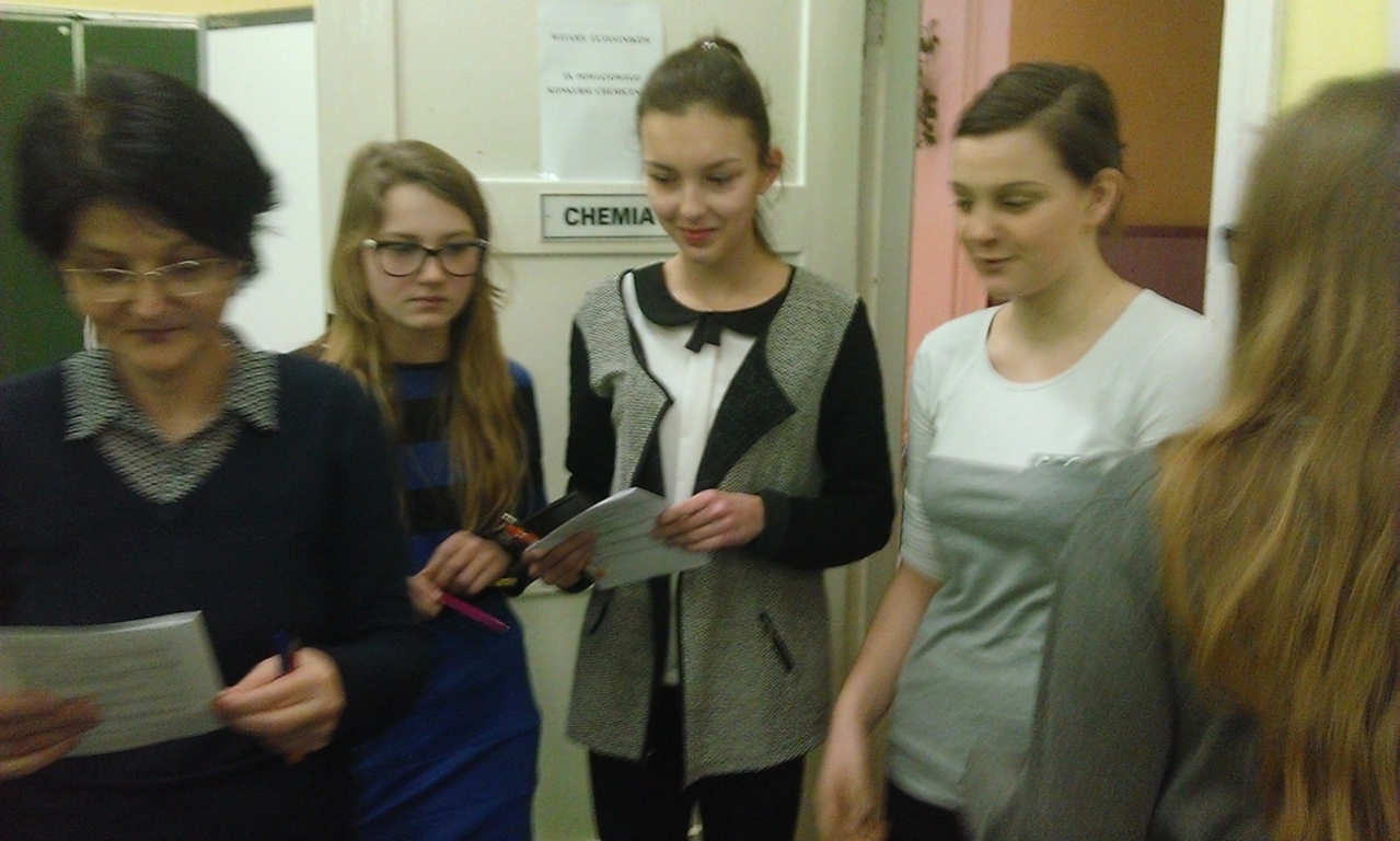 16 marca bieżącego roku uczniowie naszego gimnazjum wzięli udział w drugiej części organizowanego przez LO w Słubicach konkursu „Chemia wokół nas". Jak się okazuje nasza szkoła wystawiła najwięcej, bo aż dziewięciu uczestników (wszystkich uczestników było 33). Nie dajmy się jednak zmylić stwierdzeniu, że poszliśmy na ilość, bo jak się okazuje aż pięciu uczestników znalazło się w najlepszej szóstce po pierwszym etapie (praca pisemna na wybrany temat).