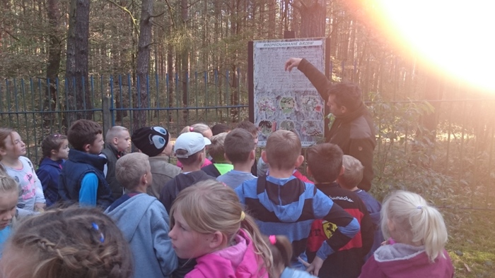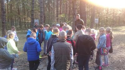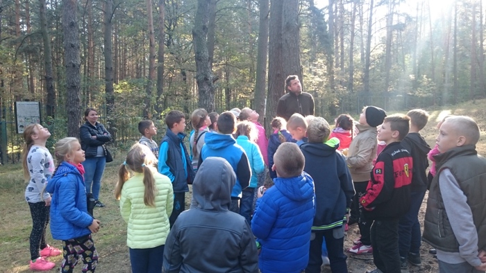 27 września 2016 r., klasy trzecie wraz z wychowawczyniami p. Olą Murawską, p. Teresą Kocan oraz z p. Ulą Budynkiewicz, odbyły wspólną wycieczkę w ramach realizacji bloku tematycznego- „Las w kolorach jesieni”. W lesie nad jeziorem Żabiniec, spotkaliśmy się z leśniczym panem Arturem Opalińskim. Pan leśniczy bardzo ciekawie opowiadał nam o roślinach i zwierzętach, występujących na terenach naszych lasów. Leśniczy pokazał nam, czym różnią się poszczególne gatunki drzew, a także jak odróżnić drzewo liściaste od iglastego. Opowiedział o przygotowaniach zwierząt do zimy. Dowiedzieliśmy się również, dlaczego niektóre drzewa w lesie są wycinane.