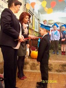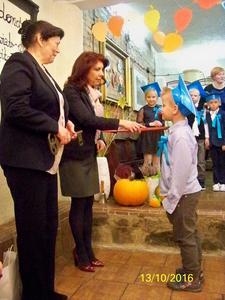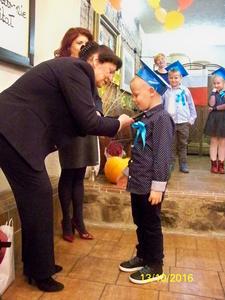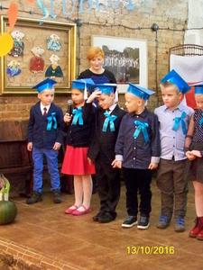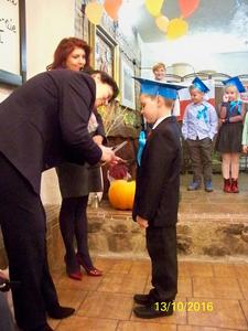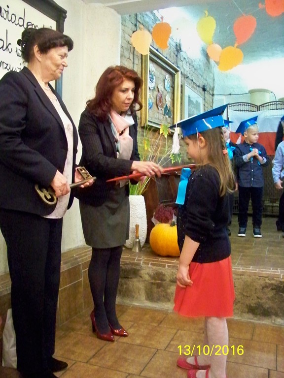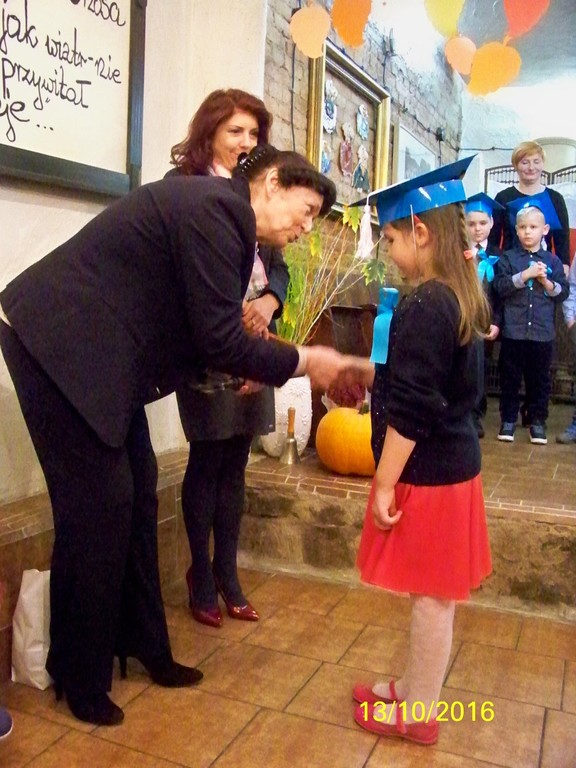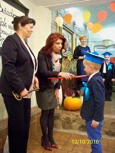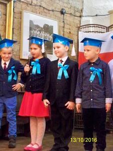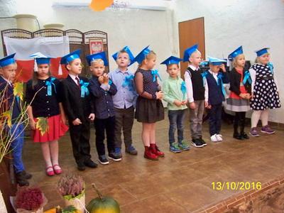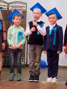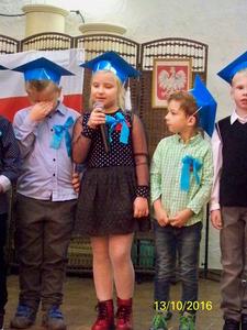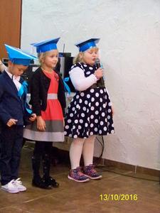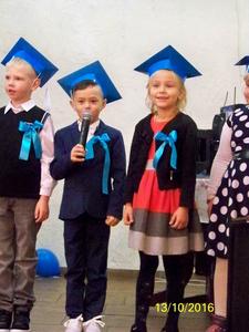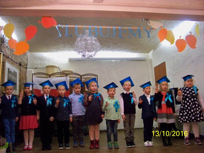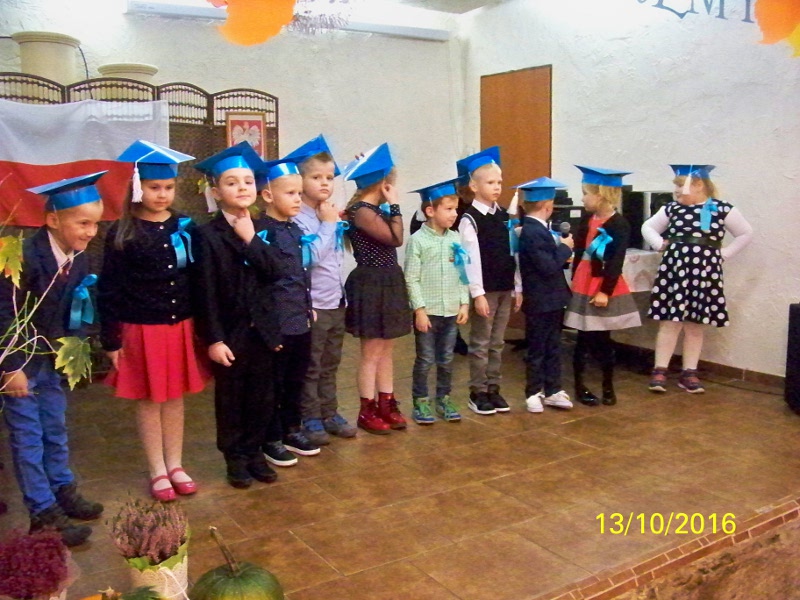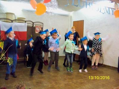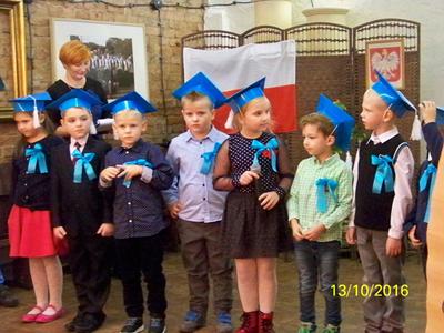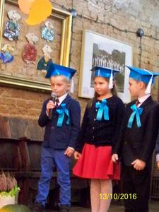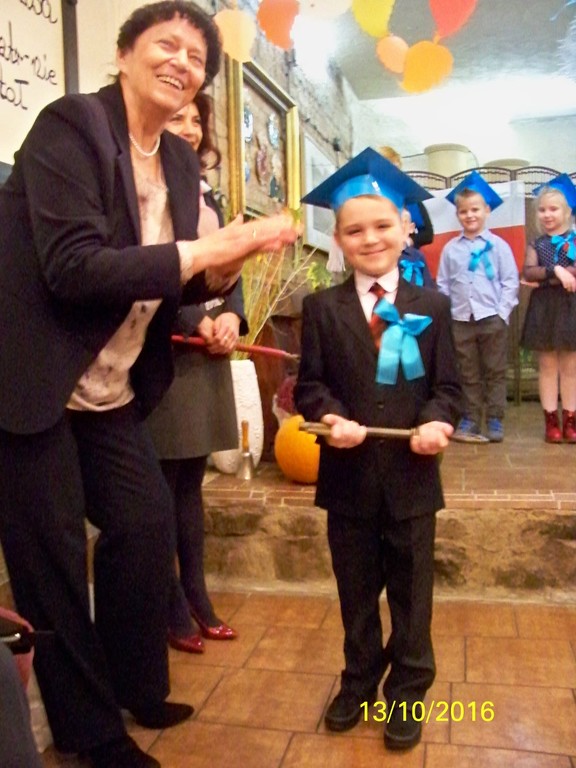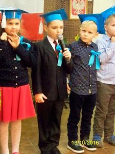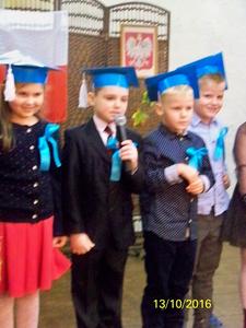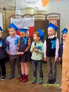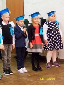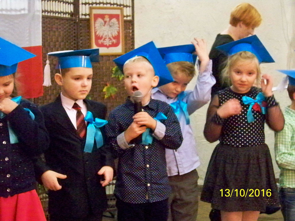 To był wyjątkowy dzień. Uroczystość przebiegała w podniosłej i uroczystej atmosferze, którą prowadziła wychowawczyni Anna Wasilewska. Bohaterowie dnia odświętnie ubrani, z uśmiechem na buzi, przedstawili zebranym gościom wspaniały program artystyczny, w którym udowodnili, że z „żółtodziobów” przeobrazili się w pierwszoklasistów i mogą być pasowani na ucznia. Najważniejszym punktem uroczystości było złożenie przysięgi przez pierwszoklasistów. Przyrzeczenie złożone na sztandar szkoły oficjalnie zakończyło okres próby i przypieczętowało przynależność uczniów do naszej szkoły. Po przyrzeczeniu pani dyrektor Ewa Thiemann i pani sekretarz Maria Palichleb uroczyście pasowali każdego pierwszoklasistę na ucznia. Na pamiątkę tego ważnego wydarzenia uczniowie otrzymali dyplomy oraz drobne upominki i udali się na słodki poczęstunek przygotowany przez rodziców.