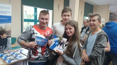 17 października uczniowie klas trzecich gimnazjum uczestniczyli w Targach Edukacji i Pracy zorganizowanych przez Młodzieżowe Centrum Kariery w Kostrzynie nad Odrą. Przewodnim hasłem towarzyszącym przedsięwzięciu było „Dwa kroki do kariery”. Podczas Targów Edukacji i Pracy młodzież zapoznała się z ofertą edukacyjną, szkoleniową oraz możliwością rozwoju na lokalnym rynku pracy. Charakterystyczna dla Targów była prezentacja szkół ponadgimnazjalnych, policealnych i wyższych uczelni oraz instytucji szkoleniowych. Podczas Targów uczniowie uzyskali niezbędne informacje o zasadach rekrutacji w bieżącym roku oraz zaopatrzyli się w materiały promujące szkoły i uczelnie. Tego dnia uczniowie również brali udział w warsztatach tematycznych z zakresu przygotowania młodzieży do wejścia na rynek pracy. Uczestnictwo w targach to możliwość spotkań, rozmów z przedstawicielami szkół, instytucji szkolących, pracownikami Urzędu Pracy, pracodawcami i przedstawicielami instytucji rynku pracy.