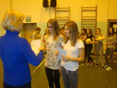 Uczennice za zajęcie miejsc I-III otrzymały pamiątkowe dyplomy i słodki poczęstunek. Nad sprawnym przebiegiem turnieju czuwała organizatorka imprezy Teresa Bednarczyk