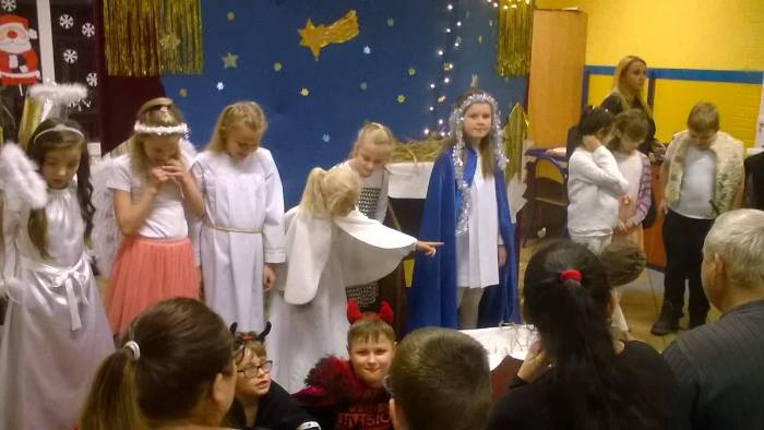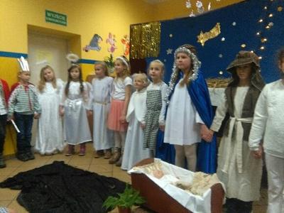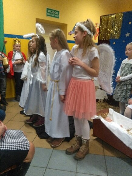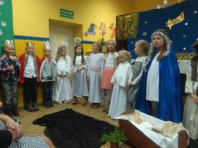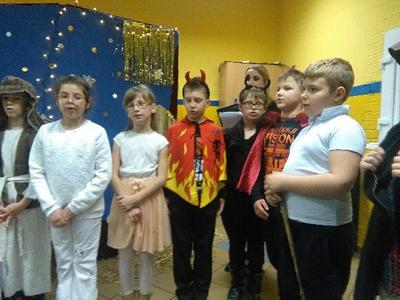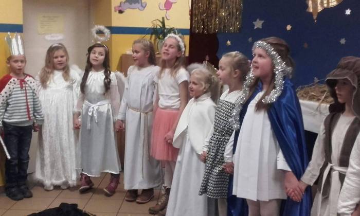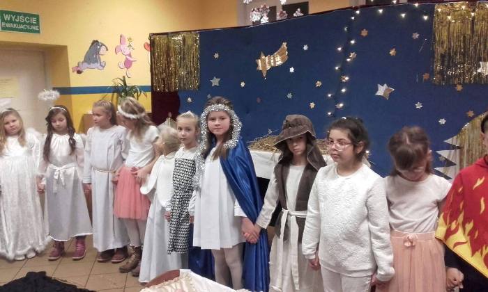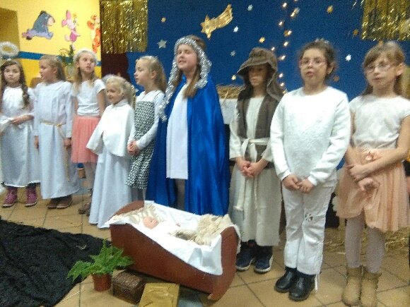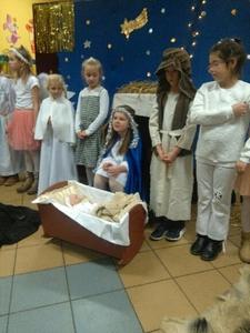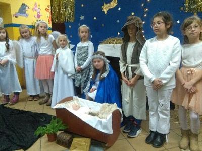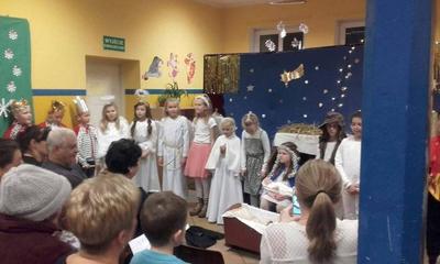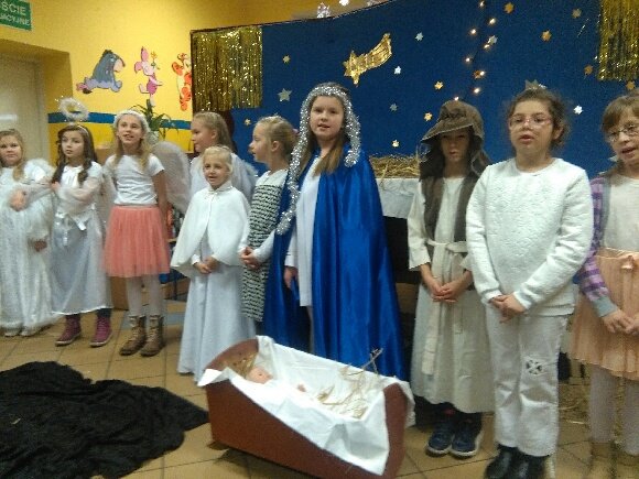 „Jest taki dzień…” – to tymi słowami uczniowie klasy III a Szkoły Podstawowej rozpoczęli tegoroczny występ jasełkowy. Cały występ uczniowie przygotowali z wychowawczynią Aleksandrą Murawską. Od kilku tygodni trwały próby do występu. Każdy uczeń bardzo skrupulatnie przyłożył się do swojej kwestii. Uczniowie przygotowali również zaproszenia na ten dzień dla swoich najbliższych. Premiera tego wzruszającego występu nastąpiła 14 grudnia br. Do świetlicy szkolnej bardzo licznie przybyły rodziny naszych małych-wielkich aktorów. Wszyscy uczniowie wyglądali fenomenalnie, bowiem przygotowali również piękne stroje, dzięki którym występ był jeszcze wspanialszy! Mimo tremy i przejęcia aktorów nasz występ wypadł doskonale! Każdy z nas najpiękniej jak tylko potrafił zaprezentował swoje umiejętności artystyczno- wokalne. Nie obyło się bez łez wzruszenia naszych kochanych rodziców… Cóż się dziwić! Po występie każdy mógł zjeść kawałek pysznego ciasta i napić się ciepłej herbatki. Serdecznie dziękuję rodzicom za pomoc w przygotowaniu tego magicznego dnia.