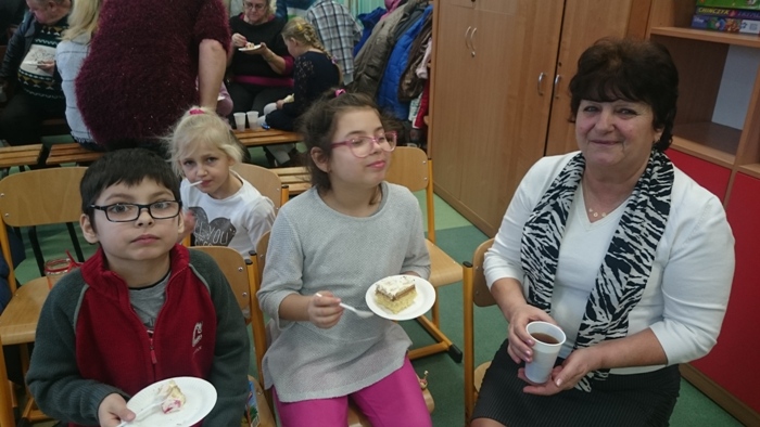 Oprócz montażu słowno - muzycznego, szanowni goście obejrzeli także pokazy taneczne w wykonaniu wnuków. Dzieci nie zapomniały o prezentach dla ukochanych dziadków, na ten dzień przygotowały ręcznie malowane słoiki, w których znajdowały się kolorowe karteczki- powody dla których kochają dziadków. Występ naszych uczniów bardzo się podobał, o czym świadczyły gromkie brawa. Na zakończenie uroczystości życzenia dziadkom złożyła Pani Dyrektor Ewa Thiemann. Następnie dzieci z babciami i dziadkami mogły skosztować pysznych ciast przygotowanych przez rodziców, oraz napić się ciepłej herbatki. Atmosfera tej uroczystości była wspaniała, podziękowaniom ze strony gości nie było końca. Uczniowie poprzez wiersz, piosenkę i taniec, mogli wyrazić kochanym babciom i dziadkom, swoje uczucia za trud włożony w ich wychowanie. Serdecznie dziękuję rodzicom za pomoc w przygotowaniu uroczystości!