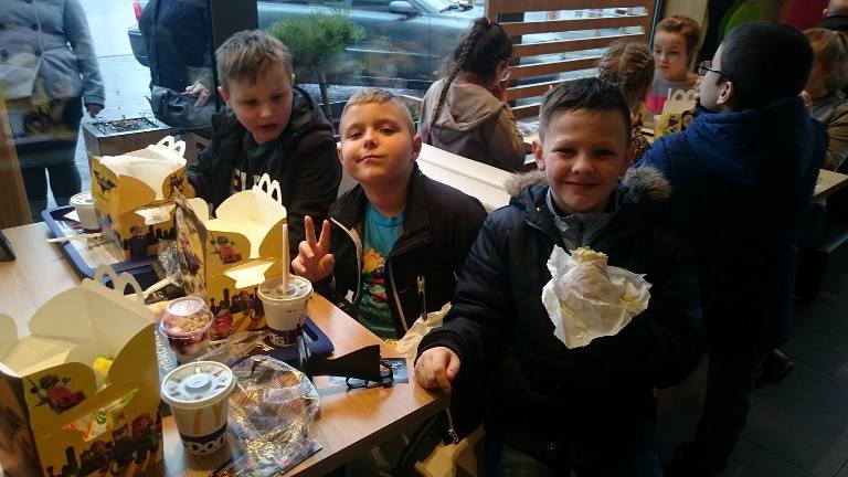 Przygody Karolci i Piotra uczyły młodego widza również zasad bezpieczeństwa: jak prawidłowo przechodzić przez ulicę, którą stroną drogi należy się poruszać, co oznaczają najważniejsze znaki drogowe i jak ważne są światła odblaskowe. Uczniowie z wielkim zainteresowaniem oglądali widowisko pełne akcji i wspaniałej gry aktorów. Uwagę trzecioklasistów przyciągały piękne, kolorowe dekoracje przeplatane nowoczesną technologią. Po wspaniałym przedstawieniu wybraliśmy się do restauracji McDonald’s. Do domów wróciliśmy pełni nowych wrażeń. Z niecierpliwością czekamy na kolejne przedstawienie.