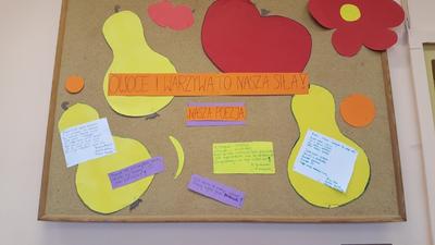 - Na lekcjach języka polskiego napisali wiersze- rymowanki o owocach i warzywach