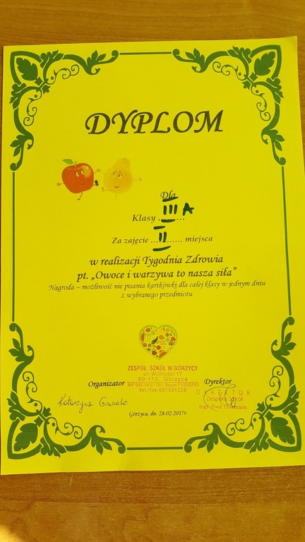 Obchody Tygodnia Zdrowia w naszym Gimnazjum w Górzycy