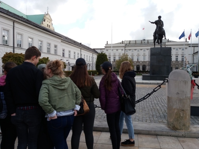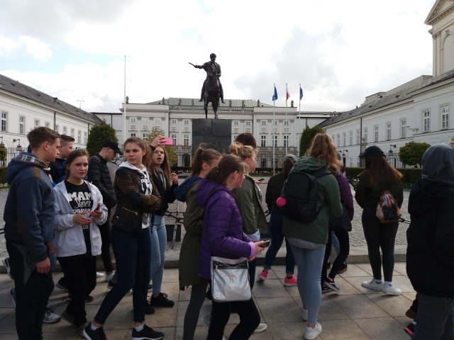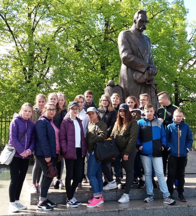 Grupa 39 uczniów naszej szkoły wyjechała do Warszawy. Zaczęło się od zbiórki .Wycieczkowiczów żegnali rodzice( niektórzy z łezką w oku- z radości?).Następnie przejazd do Rzepina i stamtąd pociągiem do stolicy.Rewelacja- prędkośc 160 km na godzinę.Poznawanie stolicy rozpoczęlismy od bulwaru nadwiślanskiego.Uczniowie zwiedzili Zamek Królewski, Stare Miasto, Łazienki, w których obejrzeli i usłyszeli grającą ławeczkę.Było Centrum Nauki Kopernik, Muzeum Powstania Warszawskiego.Pani przewodnik oprowadziła nas po Powązkach wojskowych.Byliśmy świadkami prac na Łączce na Powązkach.Wielką atrakcją cieszył się Belweder, który zwiedziliśmy od środka, oglądaliśmy rownież obrady Sejmu- zobaczyliśmy przedstawicieli rządu i najbardziej znanych posłów.Dziewczyny mogły powzdychac do Michała Szpaka.Pojechaliśmy pod stadion narodowy, ale niestety w tym dniu był niedostępny dla zwiedzających.Zwiedziliśmy dużo ,ale jeszcze wiele pozostało do obejrzenia.