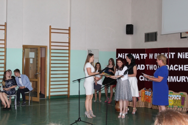 Uroczysta Akademia "Pożegnanie Absolwentów Gimnazjum" Galeria zdjęć Powiązane wiadomości Dzień Matki Wycieczka z okazji Dnia Dziecka XIII Sejmik Profilaktyczny dla klas 0-III Uroczysta Akademia "Pożegnanie Absolwentów Gimnazjum" Uroczysta Akademia - zdjęcia Wycieczka do Poznania Drukuj Udostępnij Data dodania: 13.06.2017 Wyświetlono: 1415 Aktualności