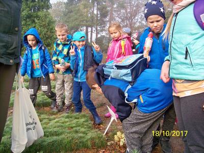 18.10.2017 roku klasa II SP zaszyła się w las poznawać jego tajniki. Dziękujemy pani Paulinie Michałek z Nadleśnictwa Ośno Lubuskie, która oprowadziła nas po szkółce leśnej, pięknie wyjaśniła różne zagadnienia związane z lasem i pracą leśników, ciekawie opowiadała o roślinach i zwierzętach oraz ugościła nas pieczoną kiełbaską.