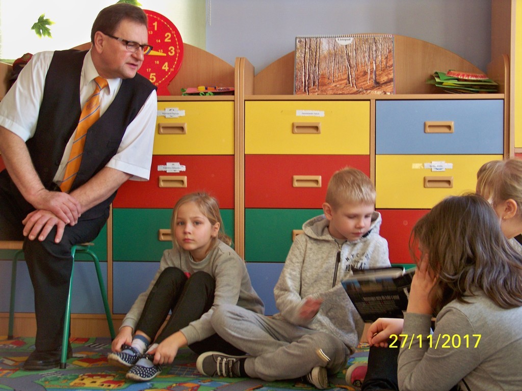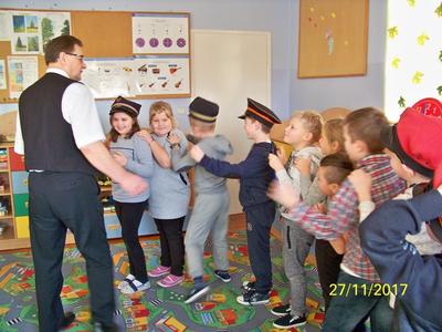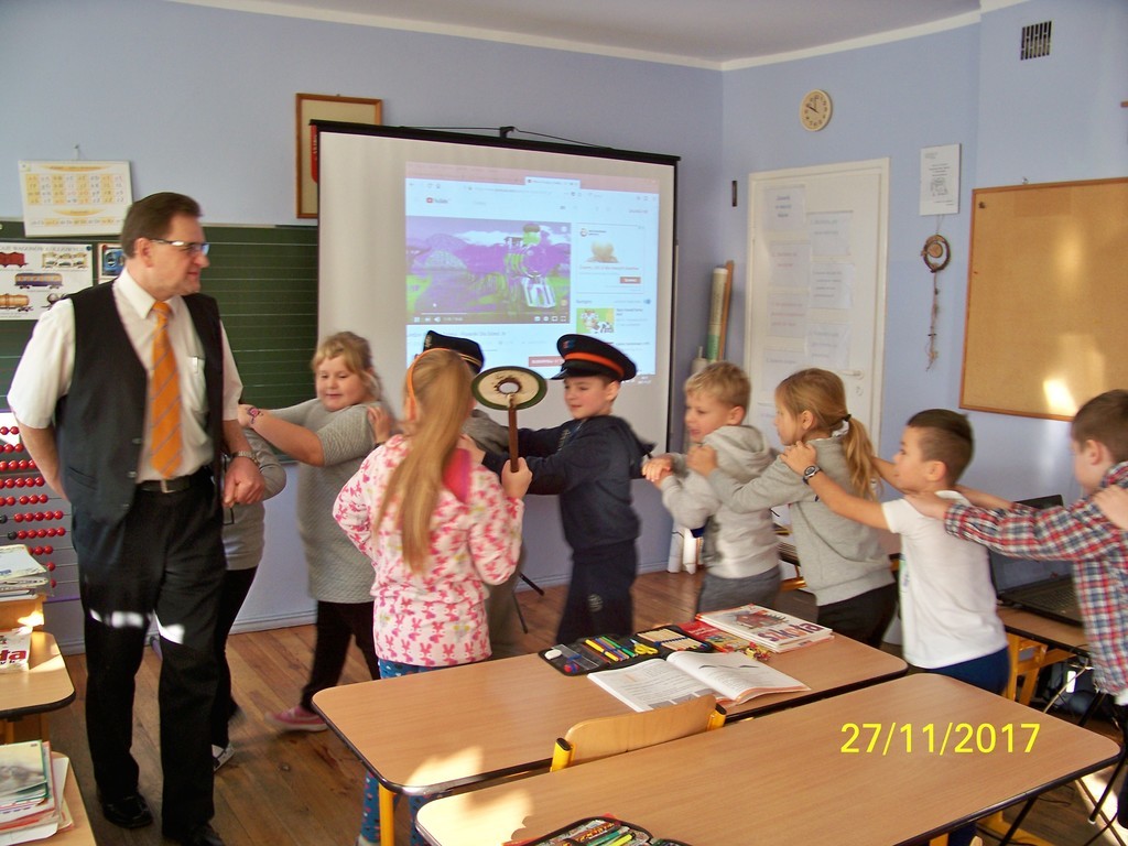 Z okazji przypadającego 25.11 Dnia Kolejarza, klasa II SP gościła u siebie maszynistę. Pan Dariusz Wasilewski w ciekawy sposób opowiedział o swojej pracy, przybliżył dzieciom zagadnienia związane z transportem szynowym, doradził jak w bezpieczny sposób korzystać z przejazdów koleją. Spotkanie upłynęło w przyjemnej dla wszystkich atmosferze.