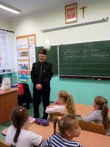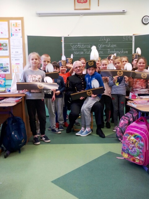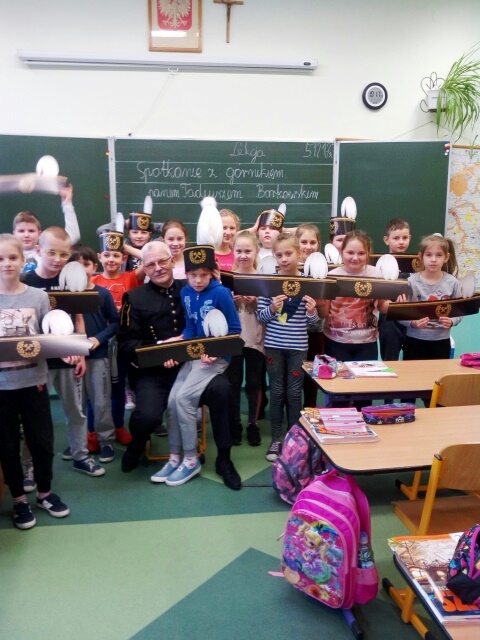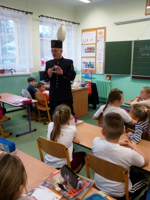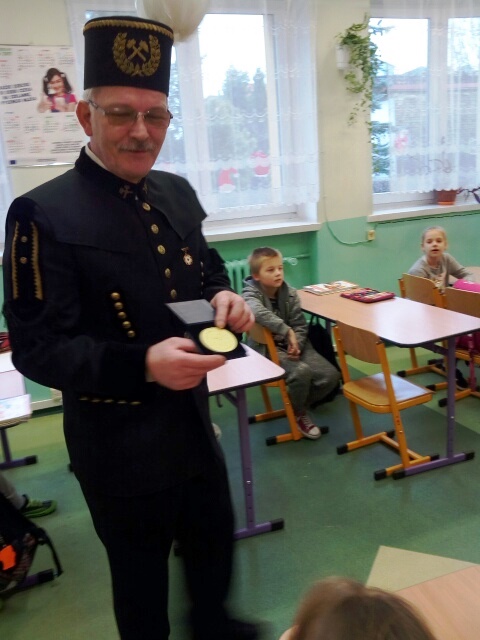 Po spotkaniu uczniowie podziękowali za ciekawe spotkanie i złożyli życzenia z okazji ,,Barbórki” oraz zaśpiewali piosenkę ,,Hej w kopalni”. Na zakończenie spotkania uczniowie wykonali pamiątkowe zdjęcie z górnikiem w galowym stroju.