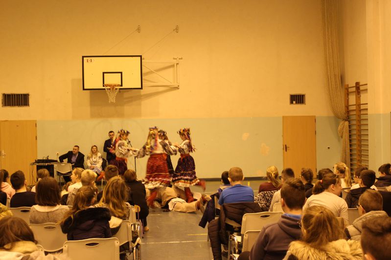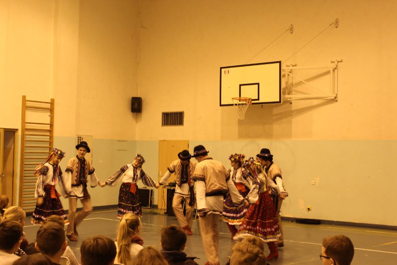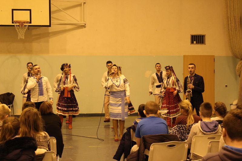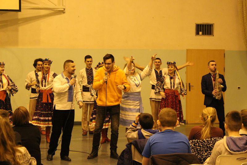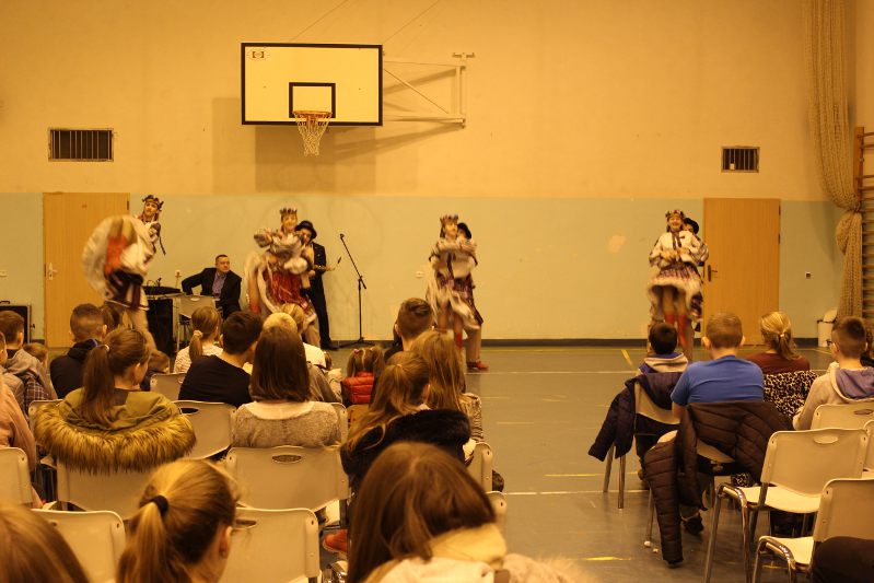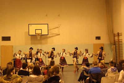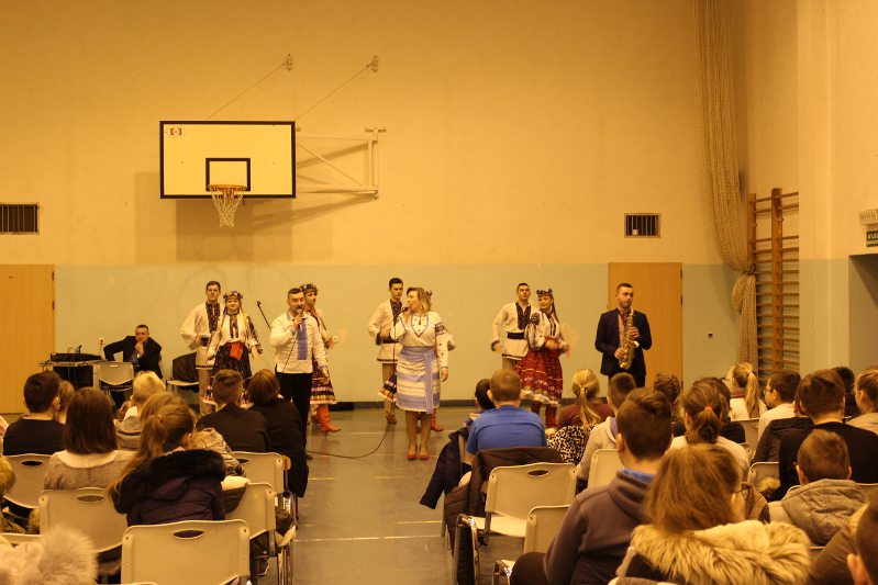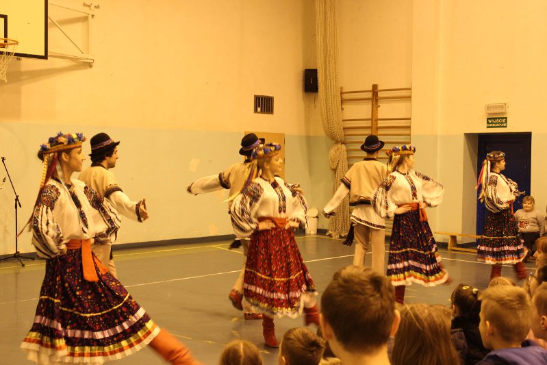 Artyści prezentowali ludowe pieśni oraz tańce, jak również piosenki znane przez nas takie jak "Przez twe oczy zielone" Uczniowie z zaciekawieniem oglądali występy i piękne stroje w które ubrani byli tancerze. Podziękowaliśmy artystom gorącymi brawami i uśmiechem na twarzy.