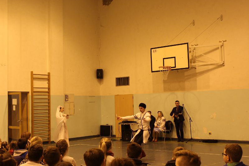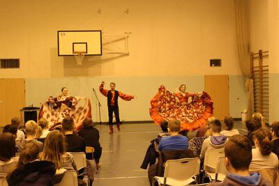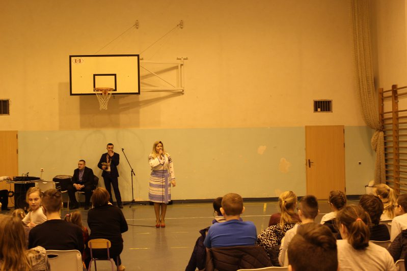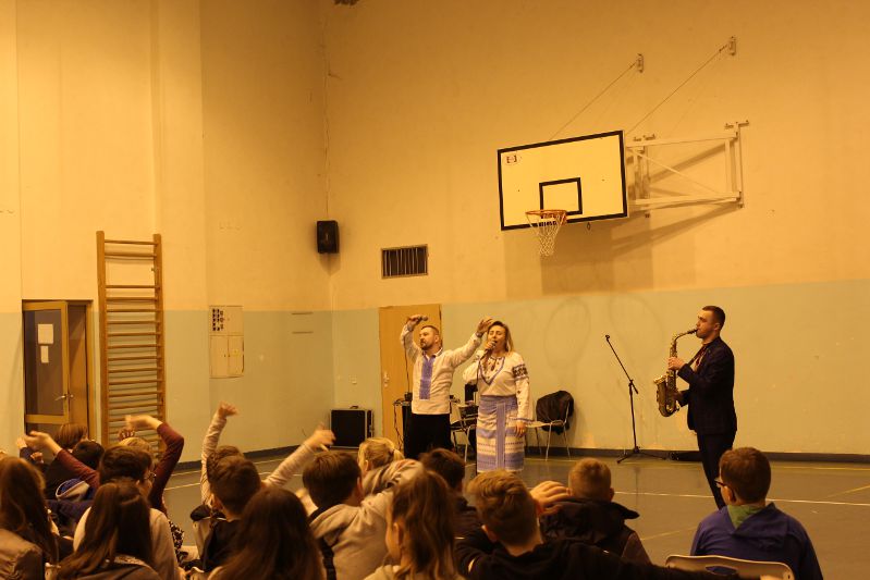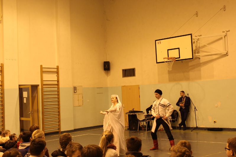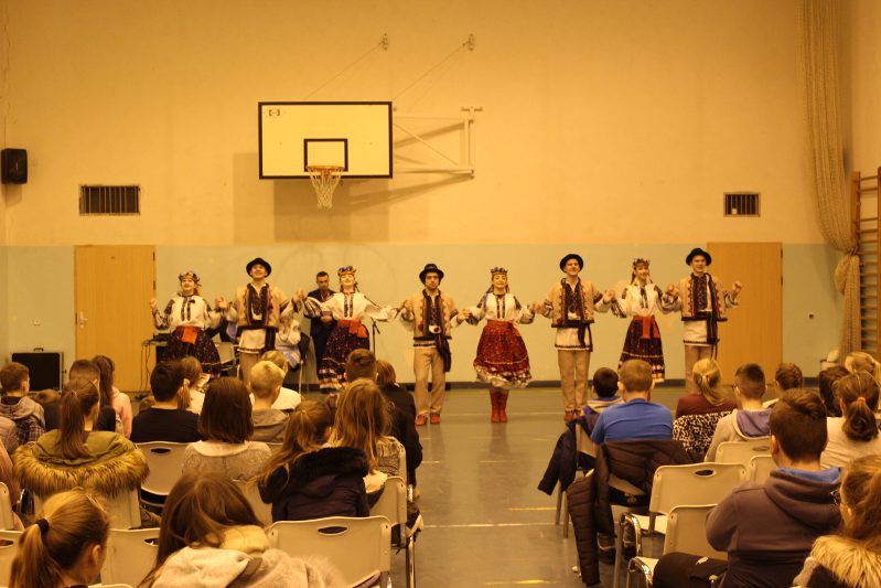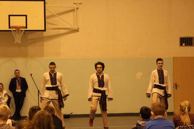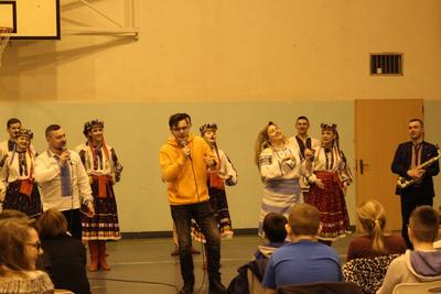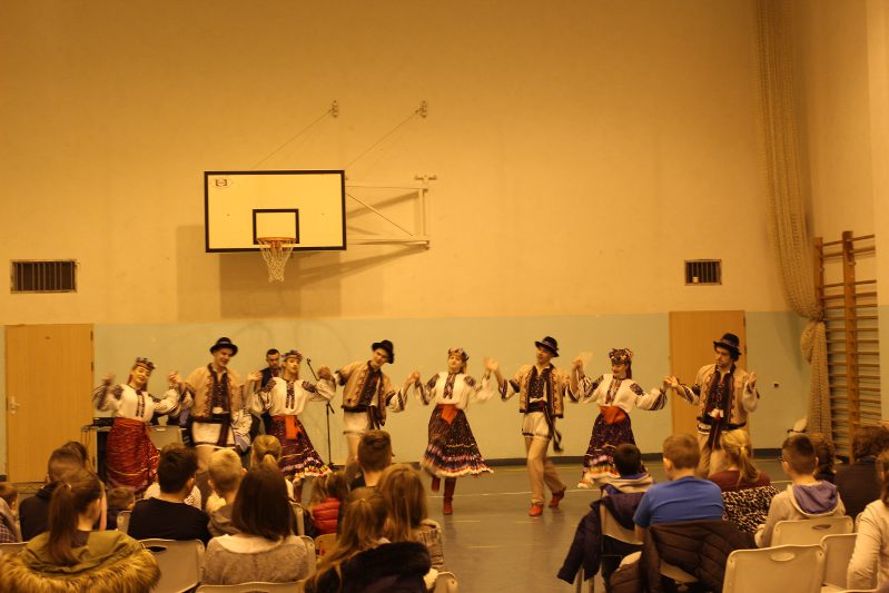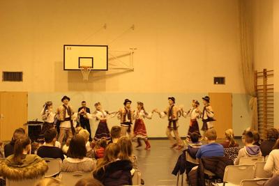 Artyści prezentowali ludowe pieśni oraz tańce, jak również piosenki znane przez nas takie jak "Przez twe oczy zielone" Uczniowie z zaciekawieniem oglądali występy i piękne stroje w które ubrani byli tancerze. Podziękowaliśmy artystom gorącymi brawami i uśmiechem na twarzy.