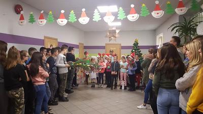 Klasa 4b wraz z wychowawcą Panią Marią Syktus przygotowali apel okolicznościowy "Tradycje Bożego Narodzenia". Zapoznali nas z historią i zwyczajami tego święta w różnych krajach. Na koniec odbyło się wspólne śpiewanie kolęd.