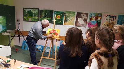 6lutego 2019 uczniowie klasy 4b uczestniczyli w warsztatach malarskich prowadzonych przez artystę Pana Janusza Stupińskiego. Warsztaty odbyły się w Gminnym Ośrodku Kultury w Górzycy. Była to dla nas wspaniała przygoda, jesteśmy zachwyceni i dziękujemy za tak cenne wskazówki.
