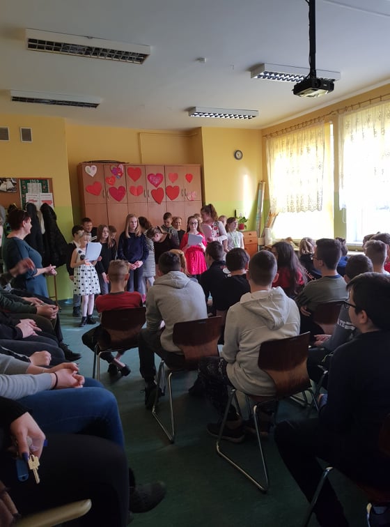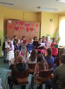 Klasa 5a wraz z wychowawcą Panią Moniką Robowską, przygotowała apel z okazji "Walentynek". Mogliśmy posłuchać pięknych recytacji wierszyków, ale także świetnie wykonanych utworów muzycznych, które porwały nas do wspólnego śpiewania.