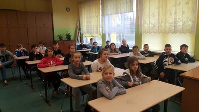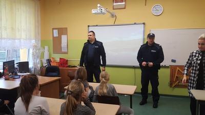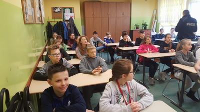 W dniu 15 marca 2019r. odwiedzili nas specjalni gości - Panowie policjanci, wygłaszając pouczająca pogadankę o odpowiedzialności karnej nieletnich. W spotkaniu uczestniczyły klasy 5 SP oraz uczniowie oddziałów gimnazjalnych.