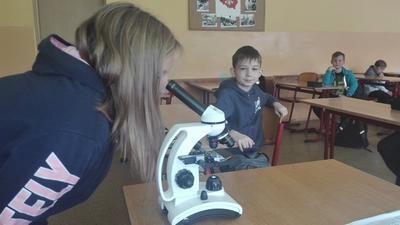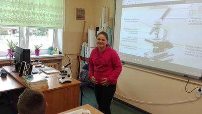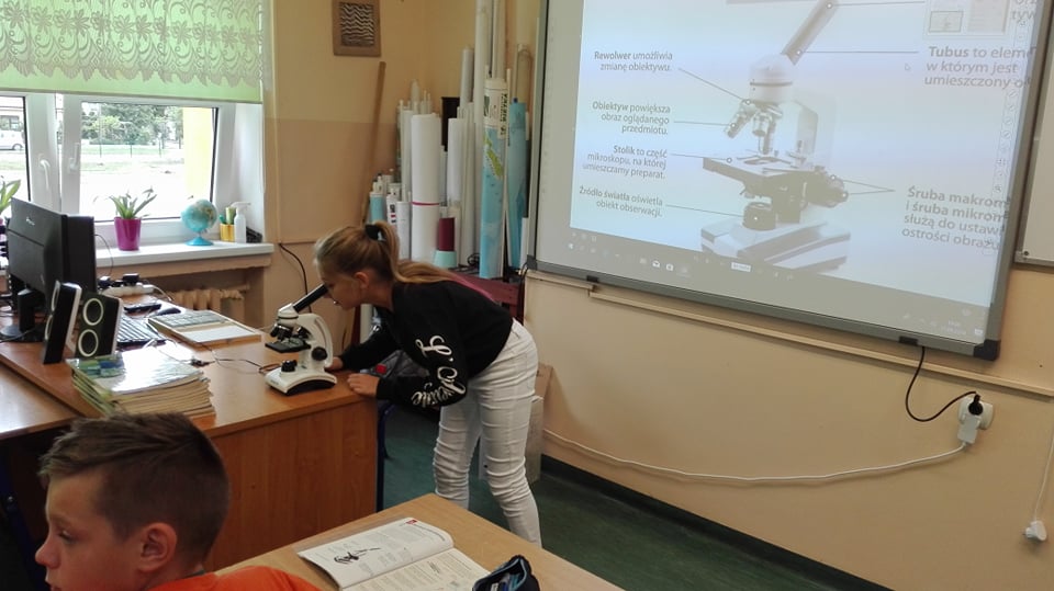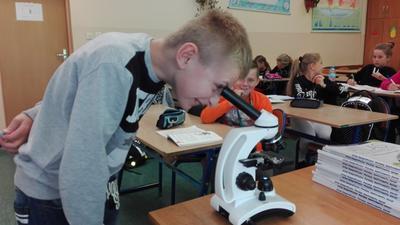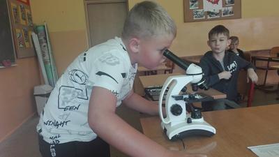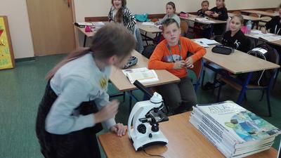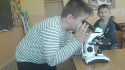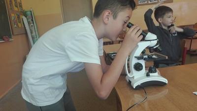 W dniu 17 września klasa 4 i 5a na lekcji biologii, pod bacznym okiem Pani Katarzyny Grundo, która pomogła swoim uczniom przybliżyć swiat mikro. Uczniowie zapoznali się z budową mikroskopu, a później aktywnie uczestniczyli w obserwacji preparatów np: aparatu gębowego komara, skórki czosnku, mròwki, skórki dyni i wielu innych. Lekcje w naszej szkole to miło spędzony czas....
