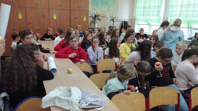 Miło zaskoczyła Marta Wilińska (VI a SP Górzyca), która wraz z koleżanką, Patrycją Matusewicz( VI a SP Górzyca) przygotowały plakat, a do tego Marta wykonała tematyczną piosenkę. Na zakończenie dziewczyny poczęstowały wszystkich pysznymi jabłkami.