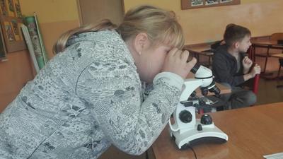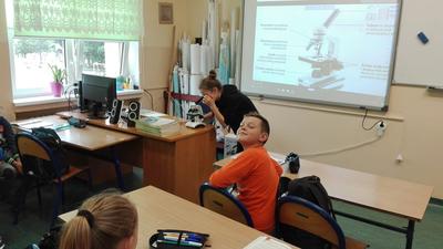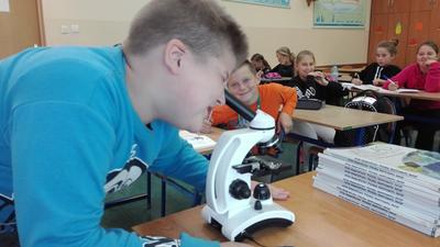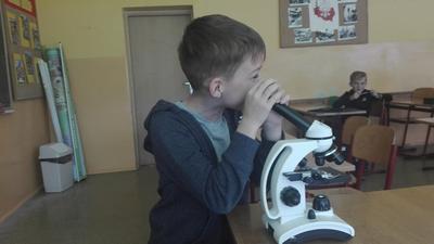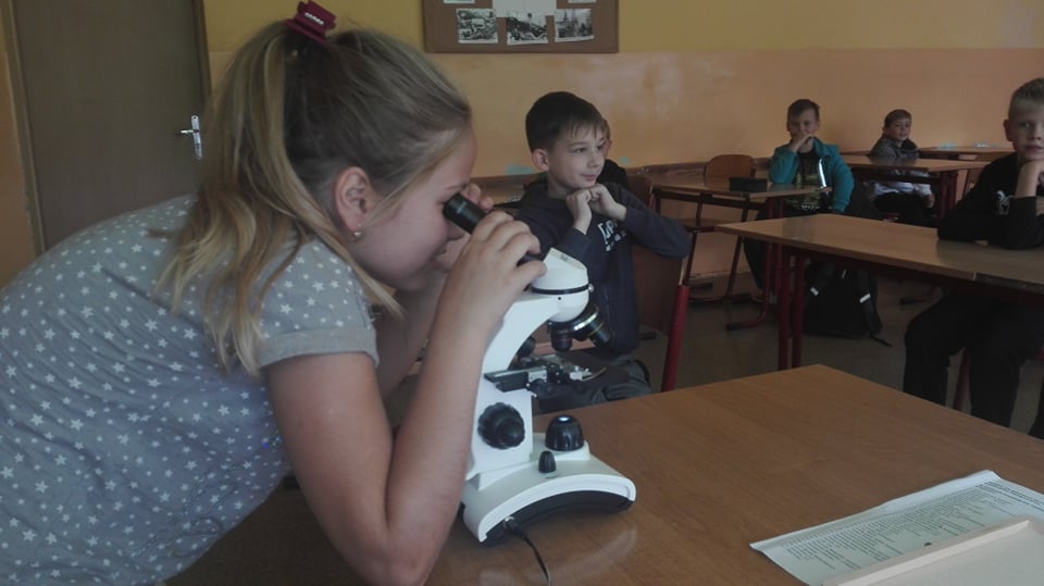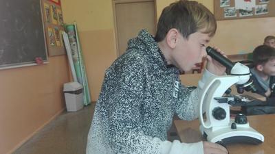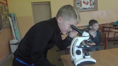 W dniu 17 września klasa 4 i 5a na lekcji biologii, pod bacznym okiem Pani Katarzyny Grundo, która pomogła swoim uczniom przybliżyć swiat mikro. Uczniowie zapoznali się z budową mikroskopu, a później aktywnie uczestniczyli w obserwacji preparatów np: aparatu gębowego komara, skórki czosnku, mròwki, skórki dyni i wielu innych. Lekcje w naszej szkole to miło spędzony czas....