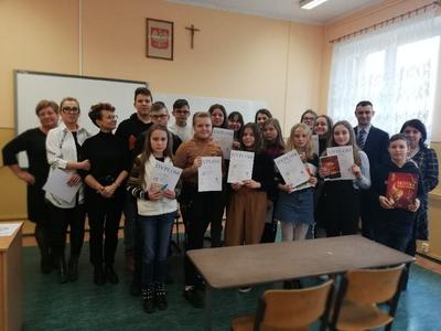 Tytuł laureata w kategorii klas V-VI uzyskała Izabela Dziemidowicz z SP Czarnów. Finalistami w tej kategorii zostali: Oliwia Plichta, Antoni Guzenda z SP Górzyca, Hanna Kwiek z SP Czarnów. W kategorii klas VII-VIII tytuł finalisty zdobył Mateusz Danicki z SP Górzyca.