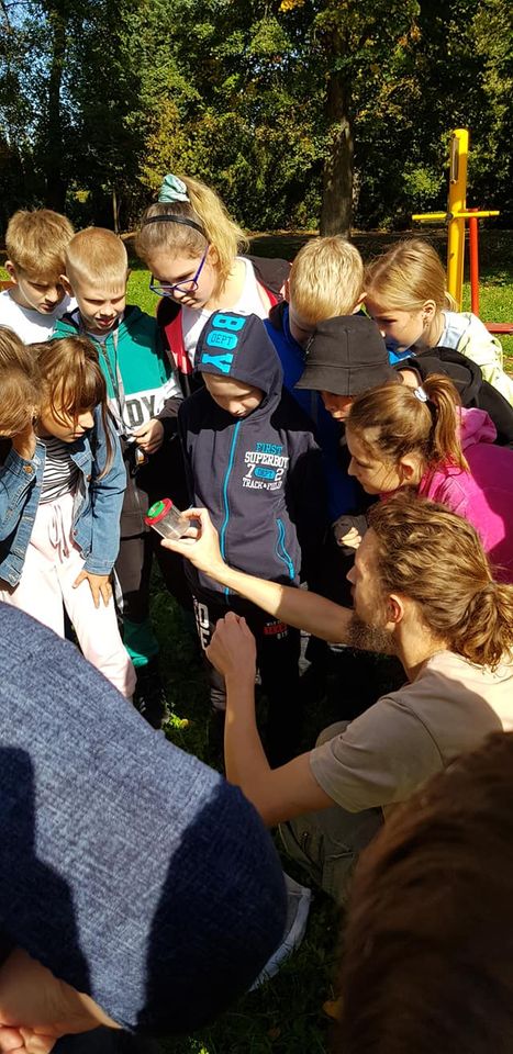 W ubiegły piątek 18.09.2020 r., uczniowie klasy 4, 5 i 6"a" skorzystali z zajęć pn."Jesienna Akademia Owada". Zajecia przeprowadzili pracownicy Fundacji Inicjatyw Przyrodniczych Dziupla. Prowadzący opowiedział o owadach, o tym gdzie ich szukać oraz jak przygotowują się do zimy. Potem uczniowie rozpoczęli poszukiwania okazów. Niektóre z nich udało się złapać! 😁 Ale tylko na chwilę, by obejrzeć i wkrótce znów, wypuścić na wolność 😉