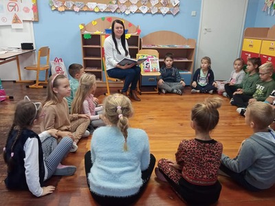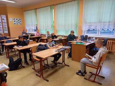 Od piewszej godziny lekcyjnej w każdej klasie czytano fragmenty książek przygotowanych przez n-la bibliotekarza. Przeważały nowości zakupione w ramach NPRCz.