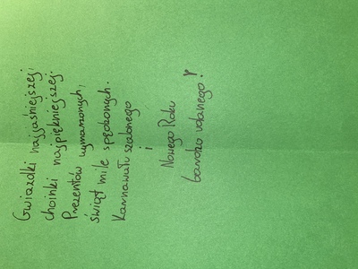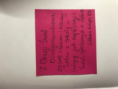 Uczniowie klasy 6b pod czujnym okiem wychowawcy Pani Marioli Syktus wykonali przepiękne kartki świąteczne bożonarodzeniowe, a także ułożyli przepiękne życzenia. Jedna z tych kartek została przekazana na konkurs do GOK w Górzycy pt. "Magiczna kartka świąteczna".