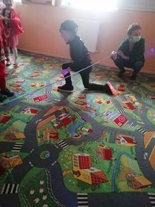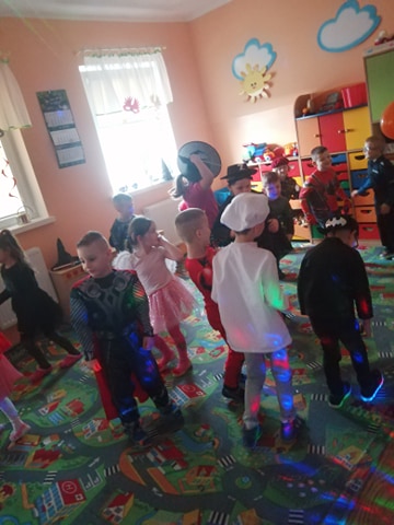 Dzieci świetnie się bawiły. Uczestniczyły wspólnie ze swoimi paniami w tańcach oraz licznych zabawach ruchowych.