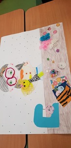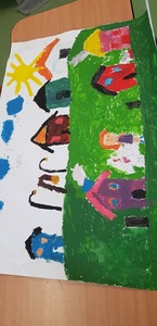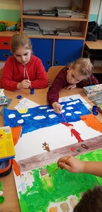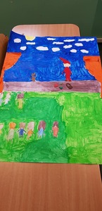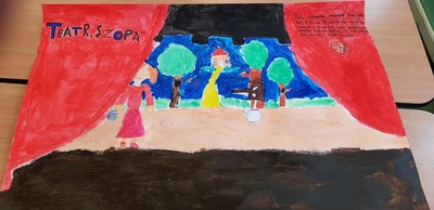 Tym razem trzecioklasiści przedstawiali dowolną scenę z lektury "Dobre uczynki Cecylki Knedelek " wybraną techniką.
