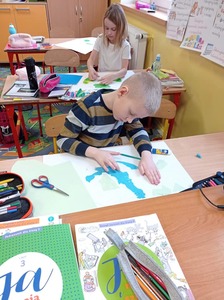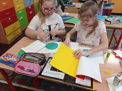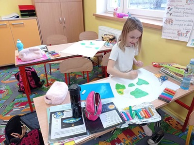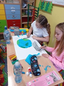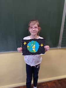Układ Słoneczny, planety, ciekawostki o Kosmosie- tego uczyli się drugoklasiści w ostatnim tygodniu. Podsumowując temat, dzieci wykonały piękne kolaże planety - Ziemi