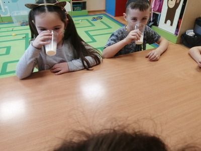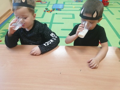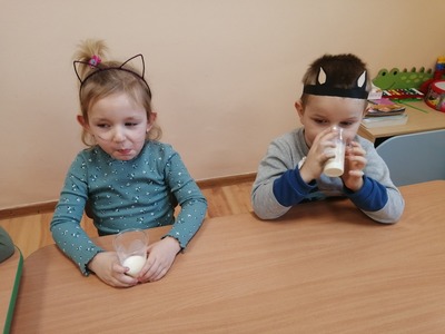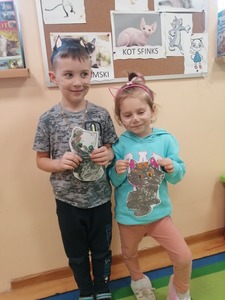 Dzieci wykonały przepiękne prace plastyczne, w których wyklejały kota plasteliną. A na koniec dnia dzieci wypiły koci przysmak.