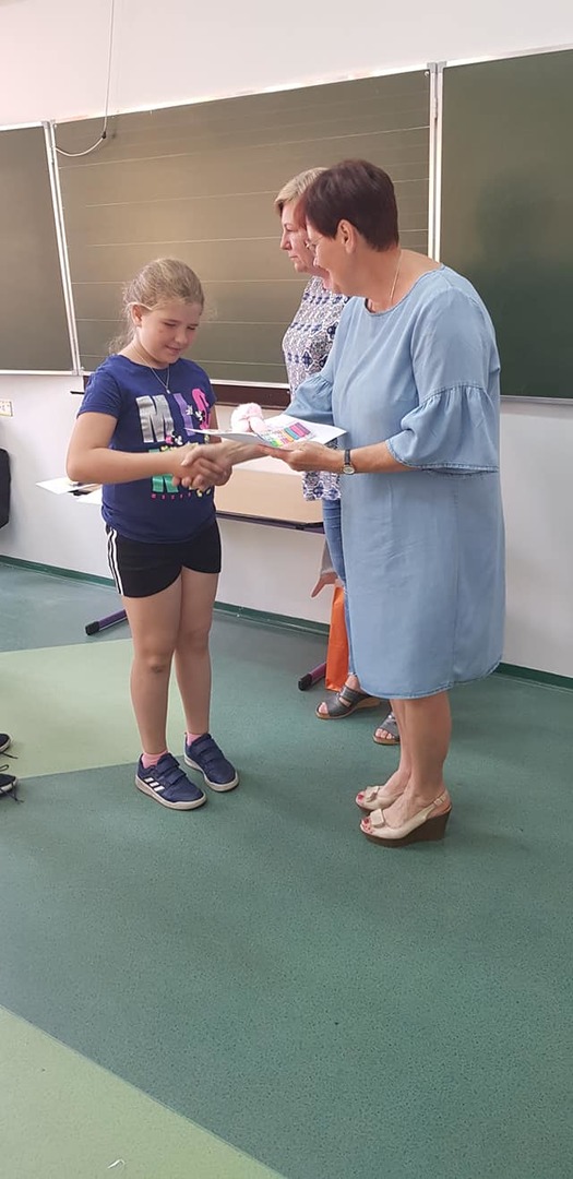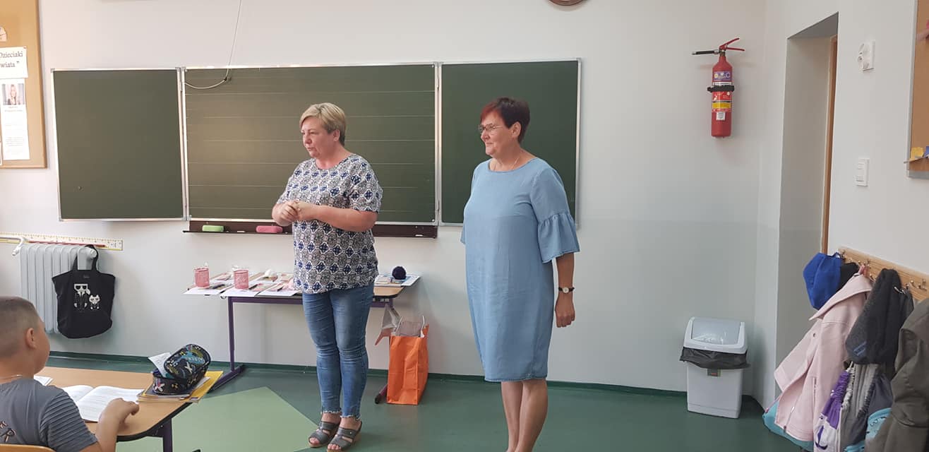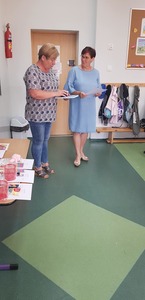 Nagrody wręczyły: Anna Szczerbin- wicedyrektor oraz Maria Syktus- nauczyciel bibliotekarz.