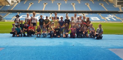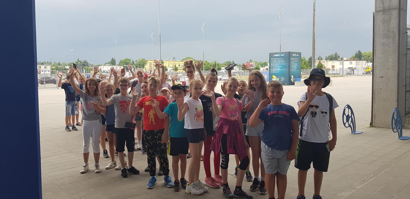 Kolejnym punktem wyjazdu, było zwiedzanie stadionu INEA wraz z przewodnikiem. Uczniowie ,,od kuchni" mogli zobaczyć jak wygląda sztania piłkarzy, stanowisko komentatorów, loża prezydencka i korytarz sław.