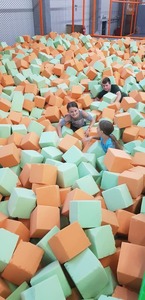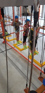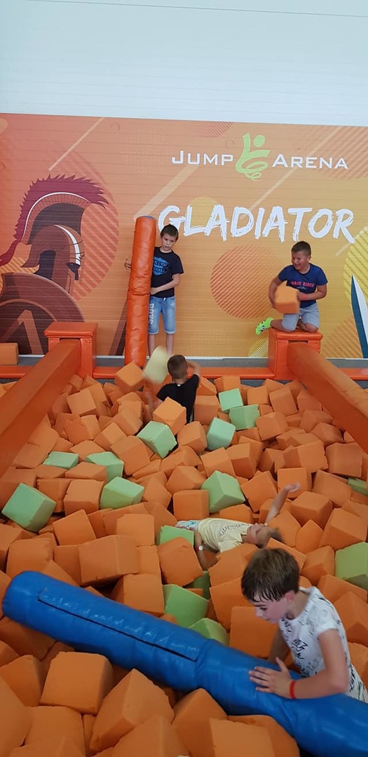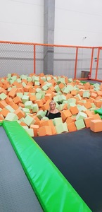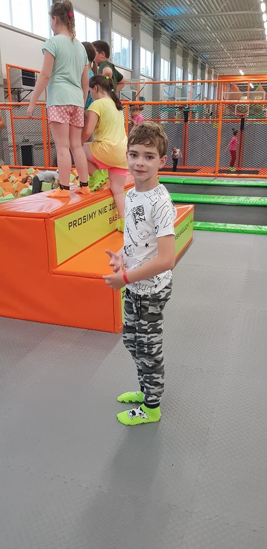 Wizyta w parku rozpoczęła się od rozgrzewki i instruktażu dotyczących bezpiecznej zabawy. Baseny z gąbkami, dmuchańce, miękkie trampoliny i stanowiska wspinaczkowe okazały się strzałem w dzisiątkę!