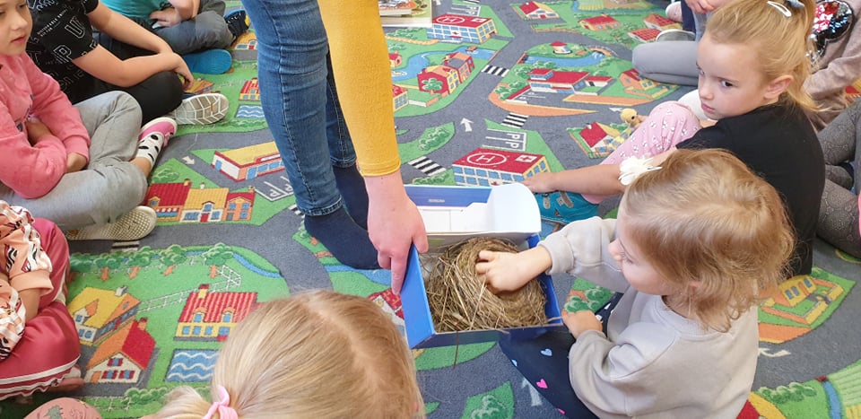 W roli głównej żaba, bóbr i ptaki... Dzieci obejrzały eksponaty, które towarzyszyły im podczas czytania. Podczas warsztatów dzieci dowiedziały się jak wygląda proces rozwoju żab, jak i z czego ptaki budują swoje gniazda oraz różne ciekawostki o bobrze i jego żeremi. Pod koniec warsztatów dzieci wykonały piękne, przyrodnicze zakładki do książek.