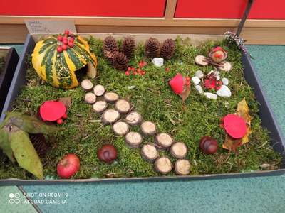 Uczniowie klas I-III wzięli udział w konkursie pt. ,,Jesienna kompozycja". Wybór prac był naprawdę trudny! Komisja w której skład wchodziły Panie: A. Murawska. K.Serafin i D. Nowak miała niełatwy orzech do zgryzienia.