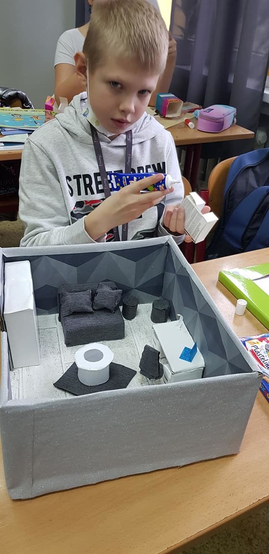 Były już makiety osiedla, a tym razem przyszedł czas na... makietę wymarzonego pokoju. Na lekcji techniki, uczniowie własnoręcznie, przygotowali wspaniałe prace, które teraz zdobią nasz hol :)