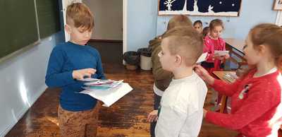 Uczniowie, również ci najmłodsi, wrzucali do niej kartki, które zostały rozdane przez uczniów klasy pierwszej.