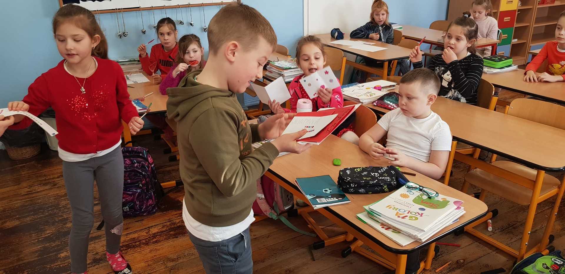 Świętowali i nasi uczniowie! W minionym tygodniu, na holu małej szkoły została ustawiona skrzynka walentynkowa.