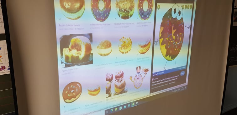 Prócz beztroskiego objadania się, nie zabrakło pączkowych filmów edukacyjnych oraz zajęć plastycznych z pączkiem w roli głównej! :)