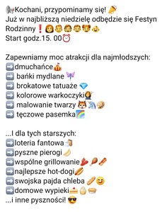 Uwaga, przypominamy się! :) Kochani, przypominamy o naszym Festynie Rodzinnym! Zachecamy do wzięcia udziału :) Zapewniamy najlepsze atrakcje i wieeeele pyszności! :) Musicie być z nami! Galeria zdjęć Powiązane wiadomości Międzynarodowy Dzień Strażaka! MATEMATYCZNE GŁÓWKOWANIE - II MIĘDZYSZKOLNY KONKURS... FESTYN RODZINNY "ZDROWO I WESOŁO" Uwaga, przypominamy się! :) Uroczystość Dnia Mamy w klasie pierwszej FESTYN RODZINNY "ZDROWO I WESOŁO" - Podsumowanie Drukuj Udostępnij Data dodania: 17.05.2022 Wyświetlono: 133 Aktualności