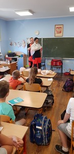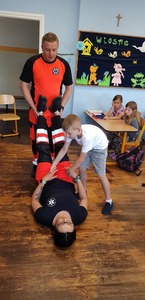 Podsumowując ostatni już blok tematyczny w pierwszej klasie pn. ,,Bezpieczne wakacje", postanowiliśmy zaprosić do naszej szkoły gości. A tym razem znów postawilismy na fachowców w swojej dziedzinie- pan Arkadiusz Kowalski ratownik medyczny i pani Anna Murawska studentka ratownictwa medycznego- ludzi pomocni, empatyczni i z meeega dawką wiedzy!