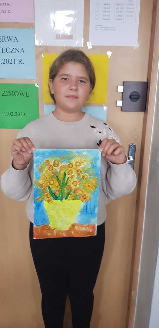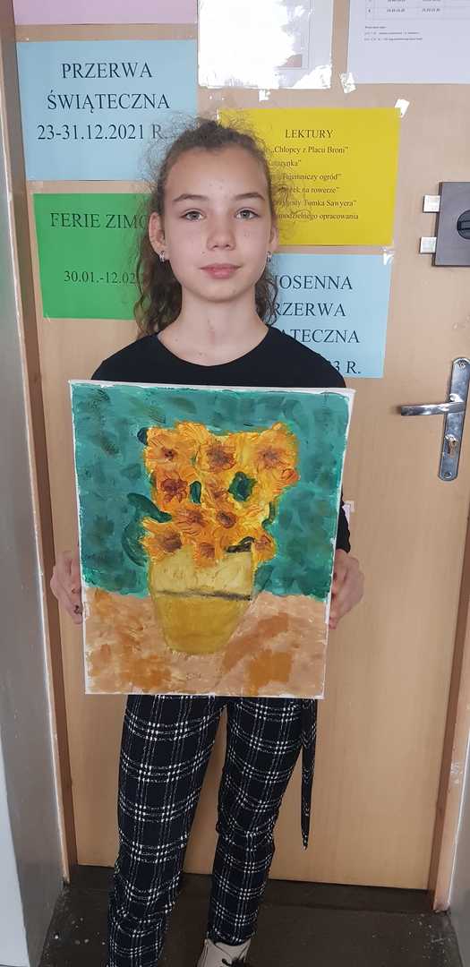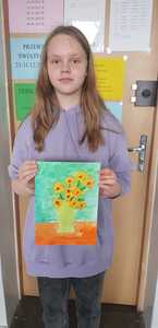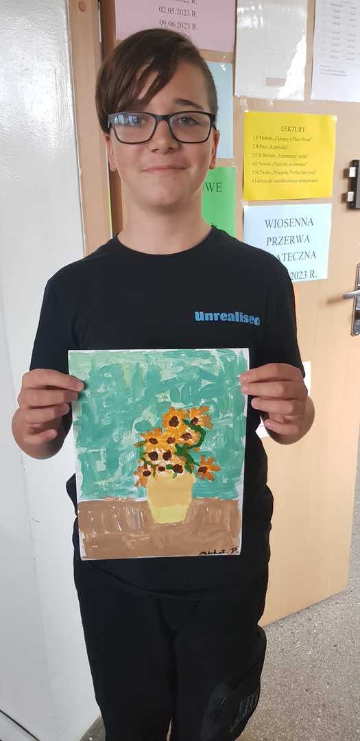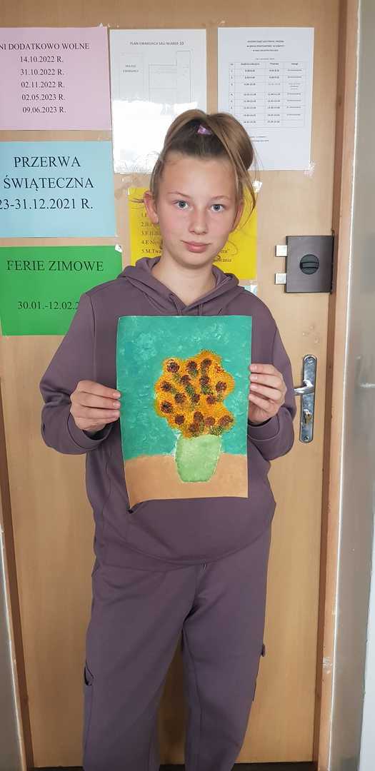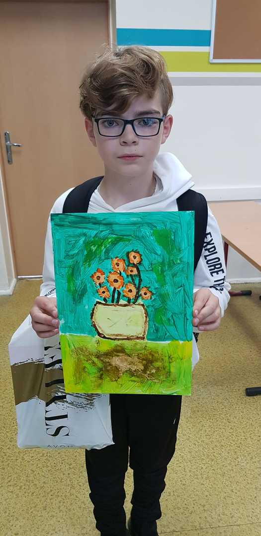 Malarstwo w klasie V W tę piękną, kolorową i słoneczną jesień ,,Słoneczniki" w wykonaniu piątoklasistów! Bazowaliśmy na dziele Vincenta van Gogha i trzeba przyznać, że wyszło całkiem dobrze :) Galeria zdjęć Powiązane wiadomości Dzień Kropki w kl. 0 Dożywianie- październik Zebranie Rady Rodziców Malarstwo w klasie V ,,Sprzatanie świata- Polska" Międzynarodowy Dzień Dziewczynki Drukuj Udostępnij Data dodania: 17.10.2022 Wyświetlono: 93 Aktualności