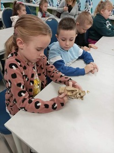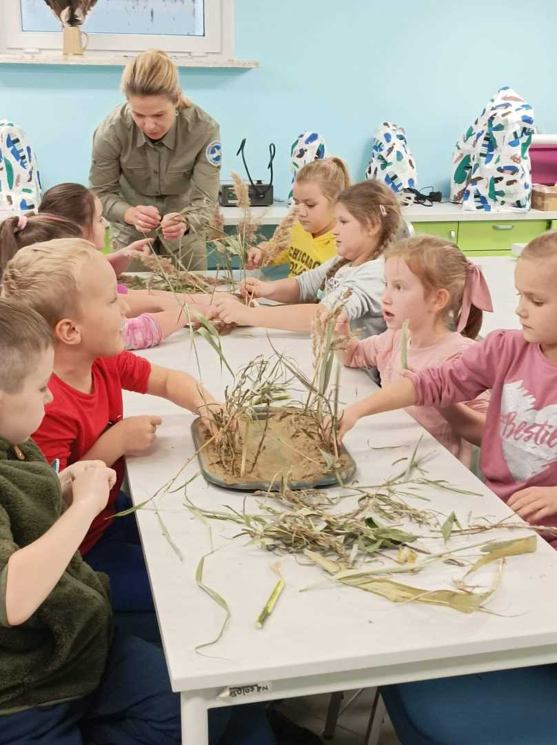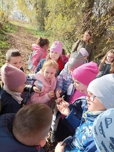 Podczas zajęć laboratoryjno- terenowych prowadzonych przez panią Agnieszkę Mielczarek dzieci poznały tryb życia bobrów i szukały ich śladów na mokradłach.