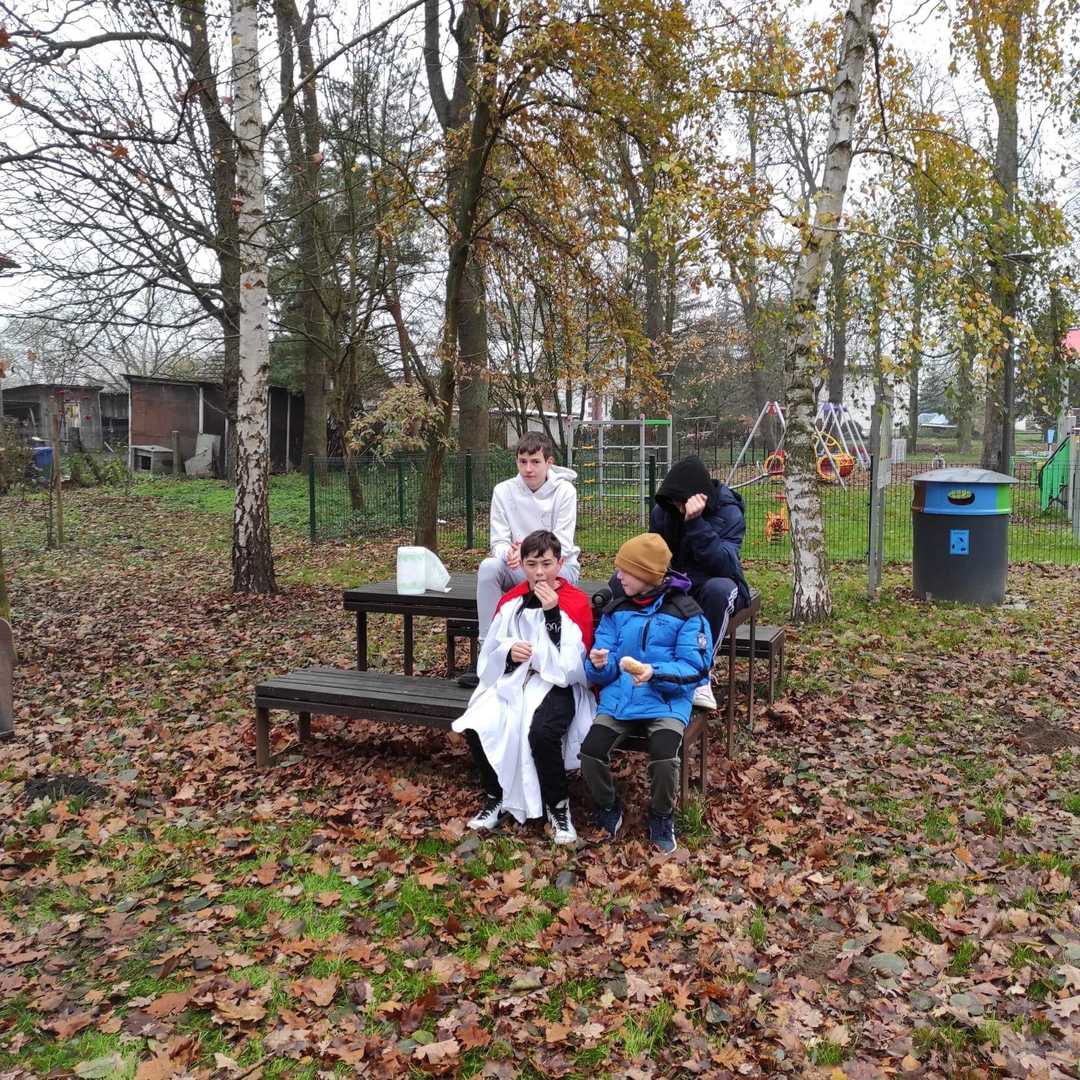 Dzień Świętego Marcina. Ten dzień jest jednym z ważniejszych wydarzeń w niemieckich szkołach. Urządzane są wtedy pochody z lampionami, dzieci śpiewają piosenkę ,,Ich geh' mit meiner Laterne...". Pochód, który prowadzi Marcin kończy się zazwyczaj ogniskiem. Uczniowie naszej szkoły również przystąpili do pochodu, a w parku czekały na wszystkich kiełbaski z grilla.