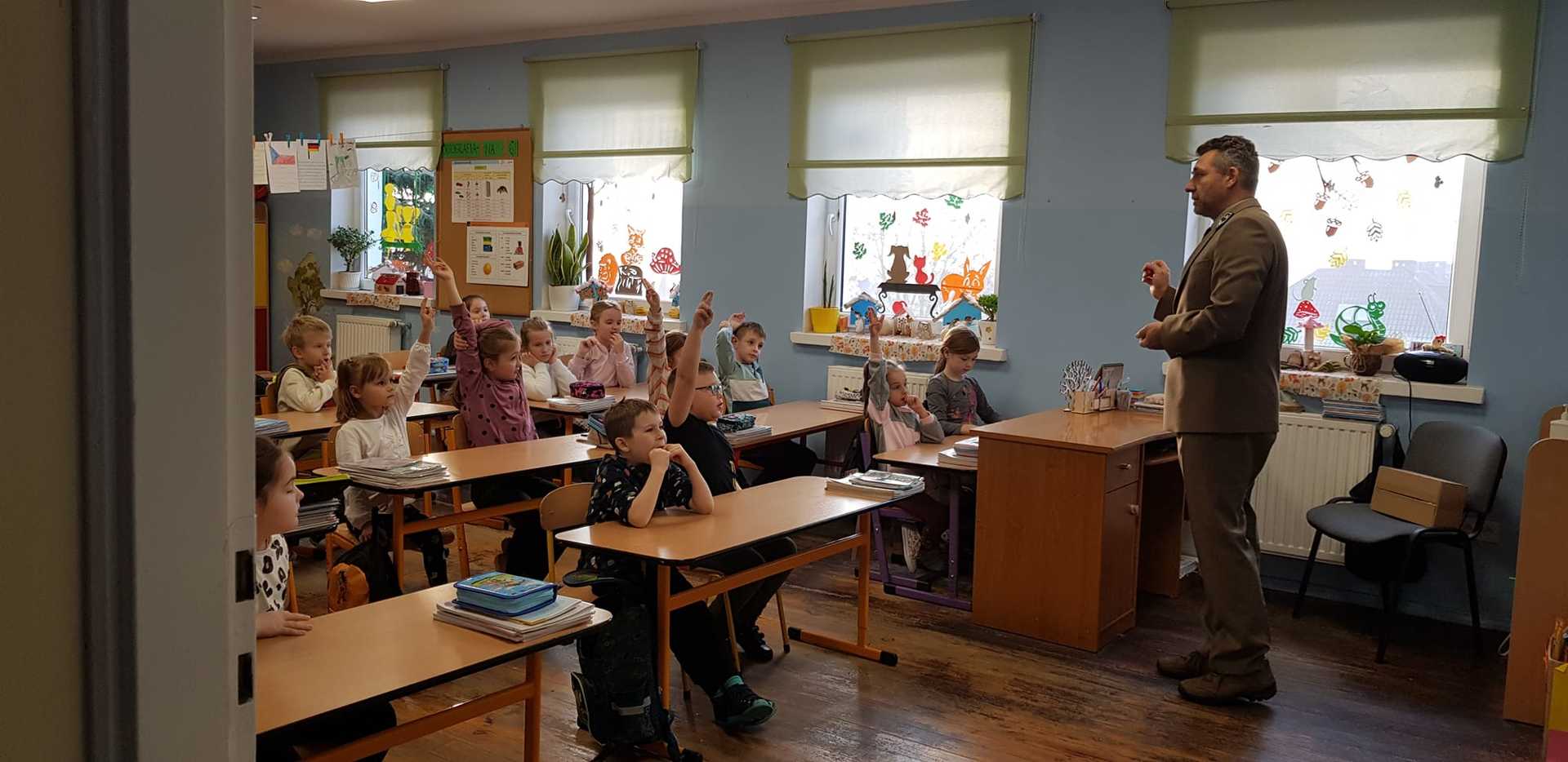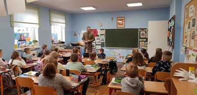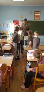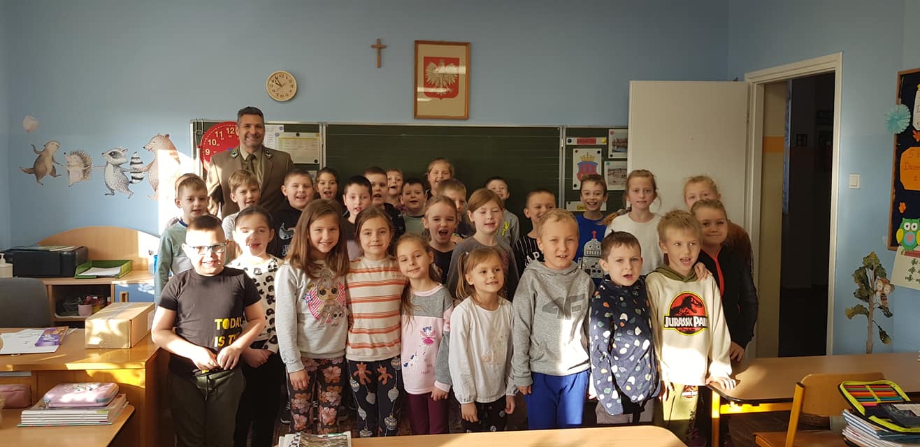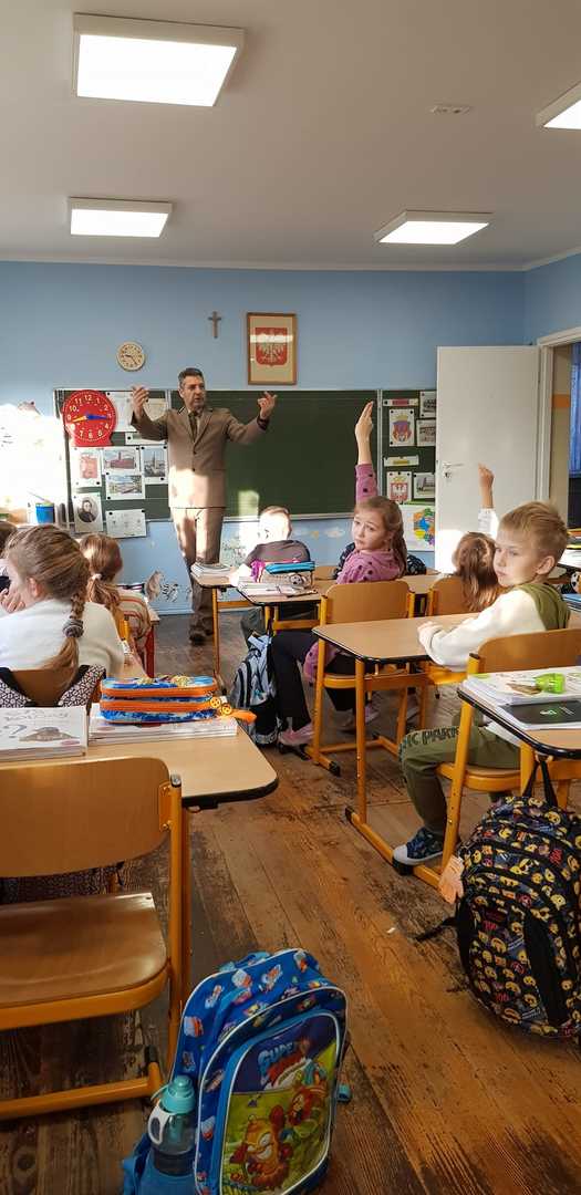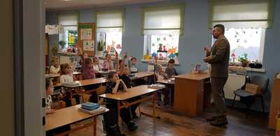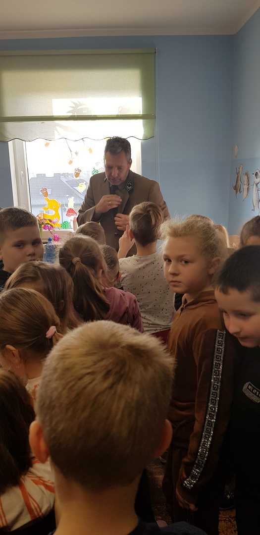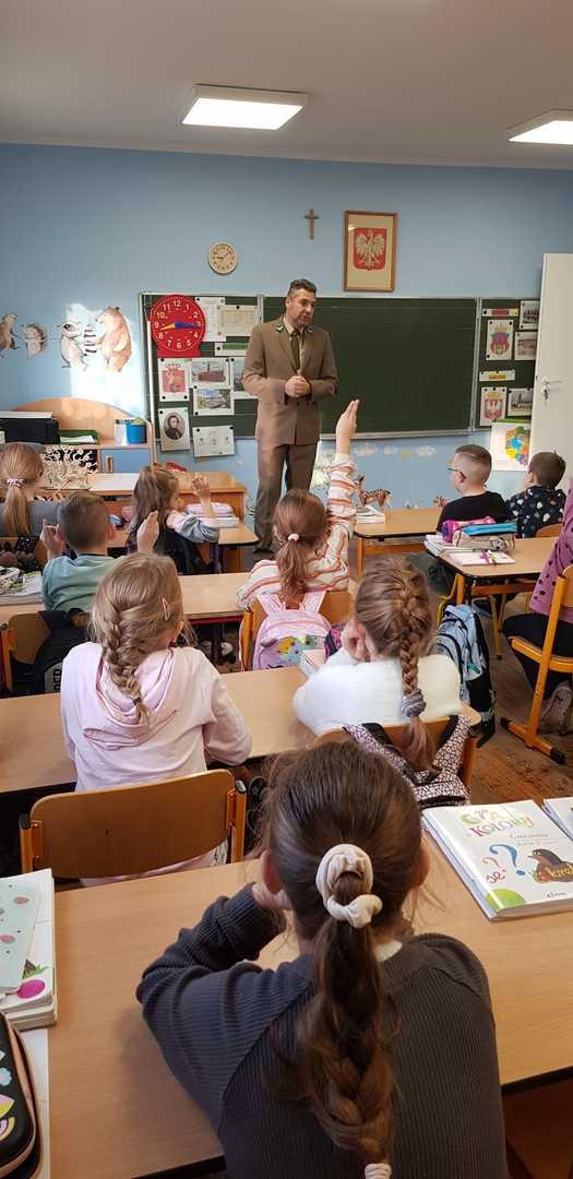 O tym które zwierzęta zapadają w stan hibernacji...Czy należy pomagać zwierzętom w tym okresie? Czym się żywią poszczególne grupy zwierząt w naturalnym środowisku? Jak wygląda praca lesniczego? Na te i wiele innych pytań odpowiedział nam gość specjalny- pan Artur Opaliński z Nadleśnictwa Ośno Lubuskie, Lasy Państwowe. Z wielką pasją i usmiechem na twarzy przeprowadził lekcję przyrody
