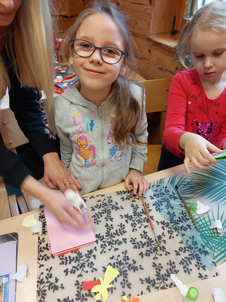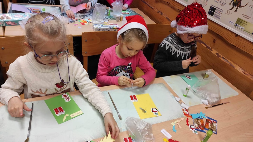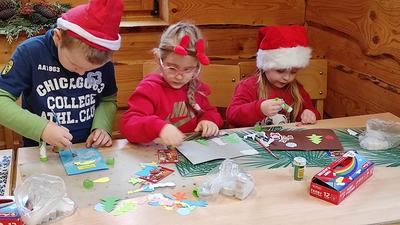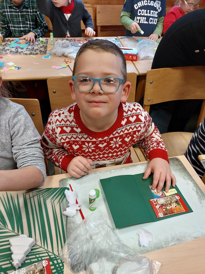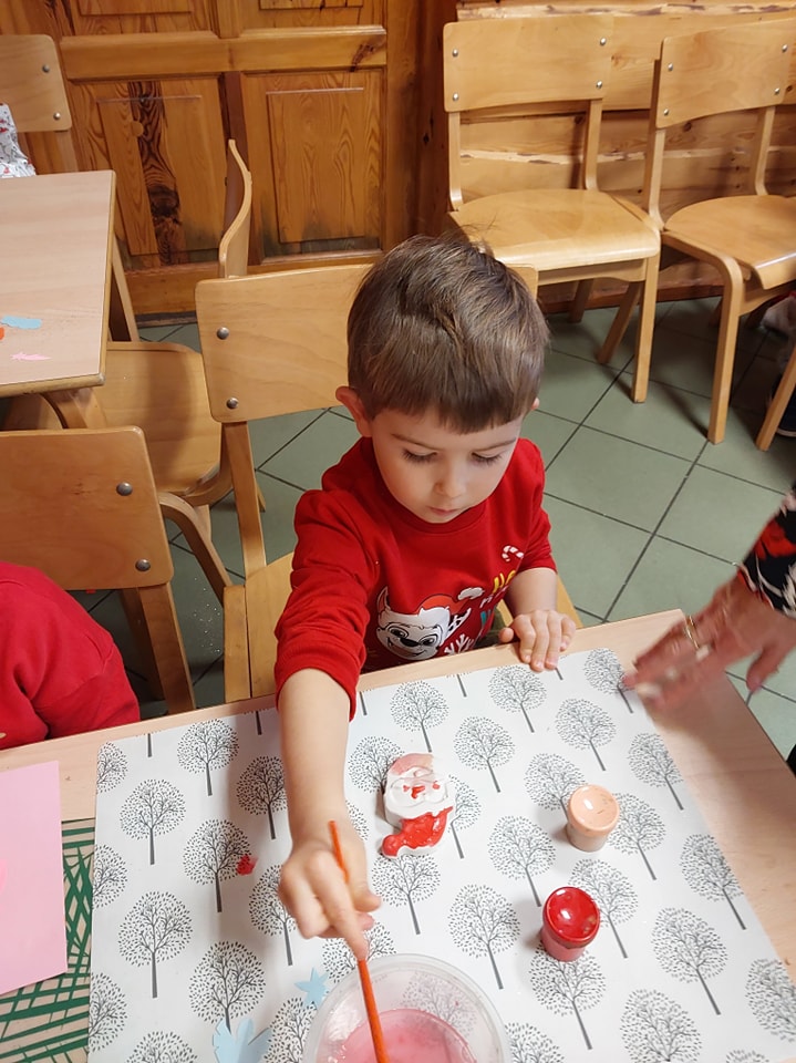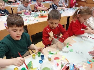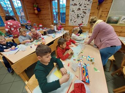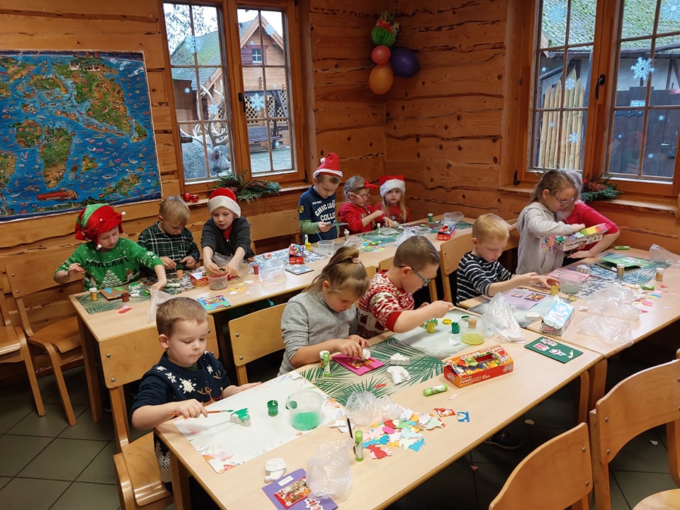 Dzieci uczestniczyły w warsztatach plastycznych- wykonały przepiękne kartki świąteczne, pomalowały figurki z gipsu.